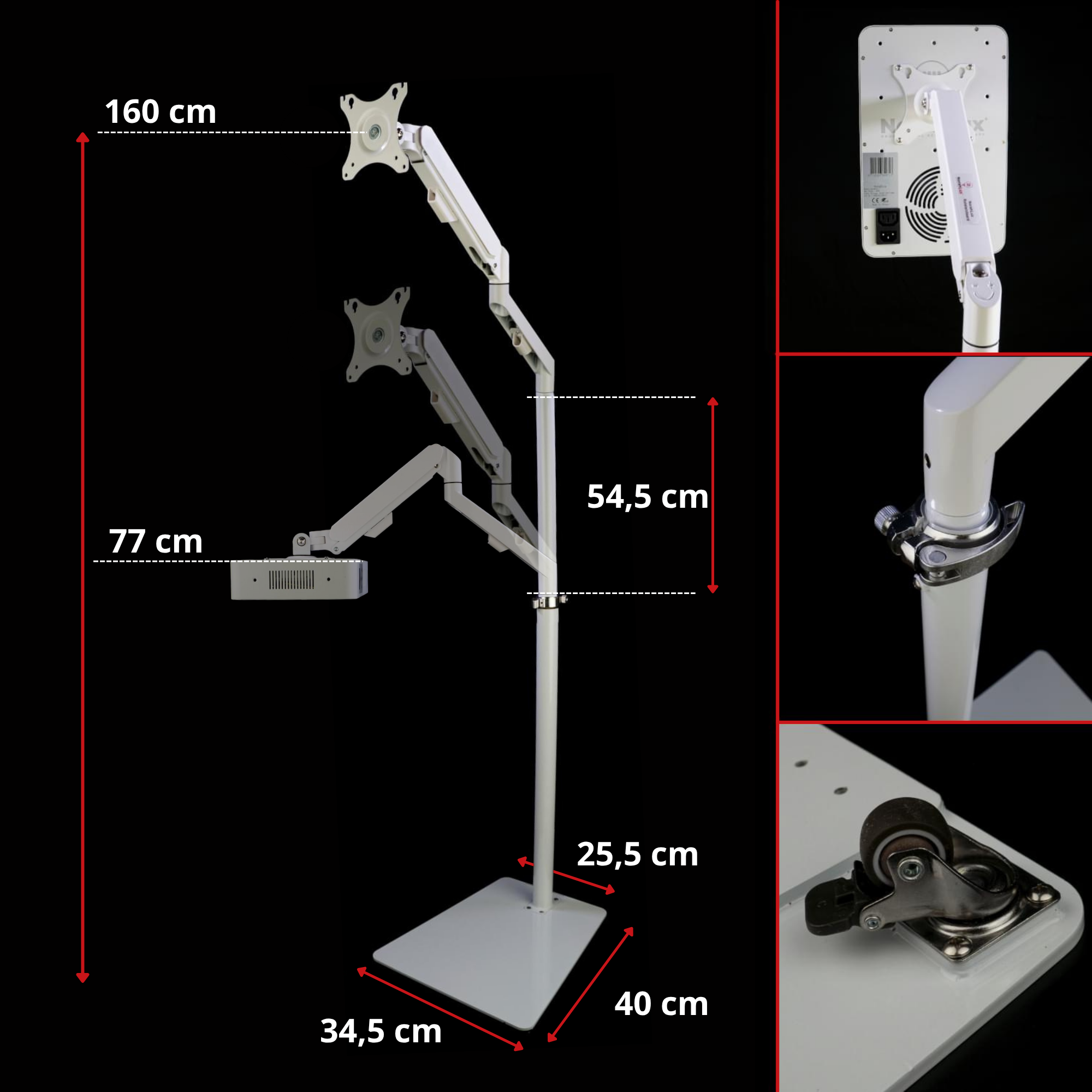 In vergelijking met de andere rolstandaard is deze standaard dan ook een stuk kleiner. Let wel op, wanneer je hele hoge kwaliteit zoekt, de andere rolstandaard kan voor Optimus600 dragen van 21,5KG waar deze rolstandaard gemaakt is voor de Horizon en Anywhere onder 3KG.