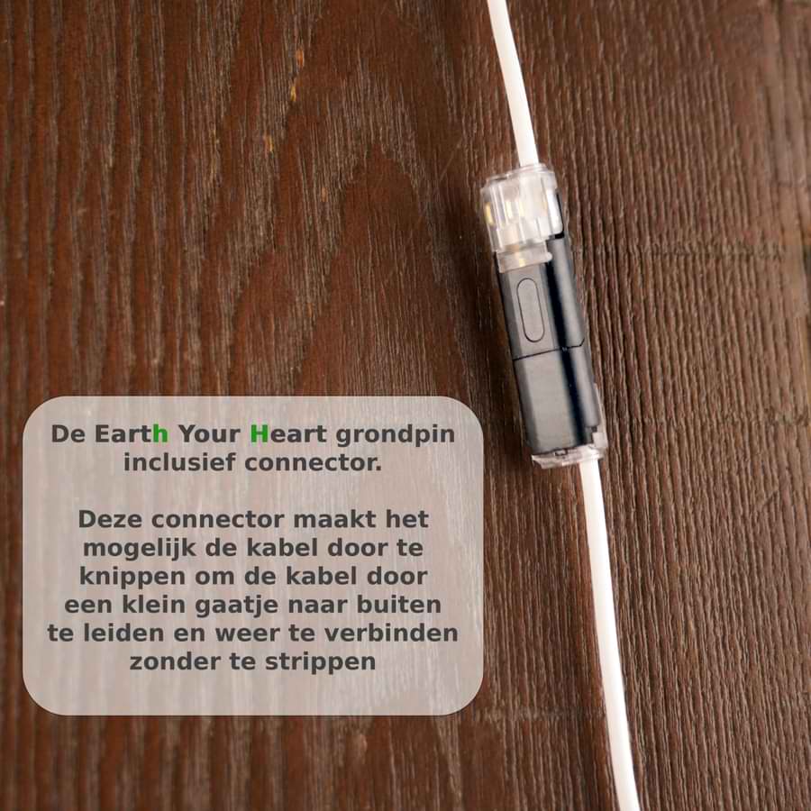 Wil je een nog betere aarding, dan kun je kiezen voor een aardingspin van 30 cm met 20 meter kabel die je direct in de grond kan steken, eenvoudig bij te bestellen.